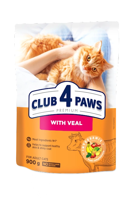 CLUB 4 PAWS Premium pełnoporcjowa sucha karma dla dorosłych kotów - cielęcina 900 g