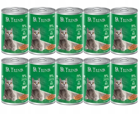 DR. TREND pełnoporcjowa mokra karma dla dorosłych kotów z wołowiną, kawałki w delikatnym sosie 10x400 g