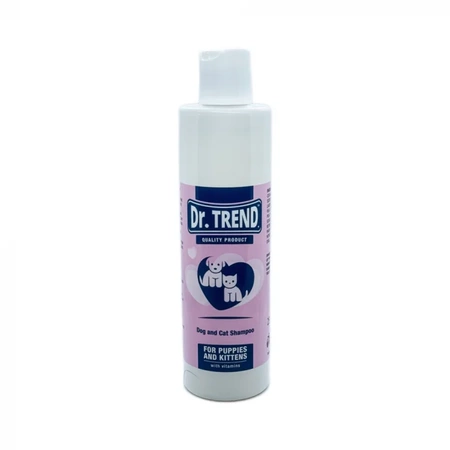Szampon witaminowy Dr. Trend przeznaczony specjalnie dla szczeniąt i kociąt. Szampon posiada formułę dostosowaną do wrażliwej skóry i delikatnej sierści szczeniąt i kociąt. Oczyszcza nie powodując podrażnień skóry. Szampon jest wzbogacony witaminami dla lśniącej i zdrowej sierści. Kontroluje zapach zwierzęcia i ma zrównoważone pH.