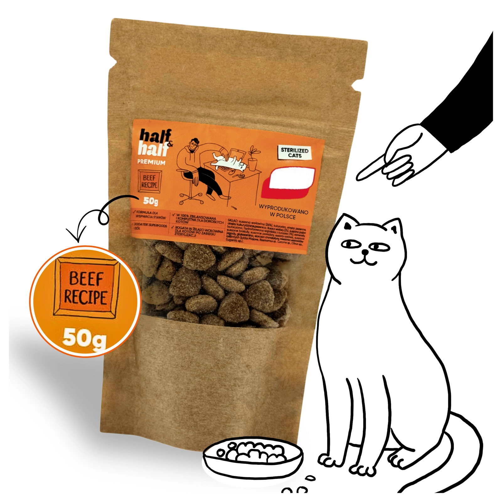 Half&Half "Sterilised" sucha karma dla dorosłych kotów - wołowina 50 g