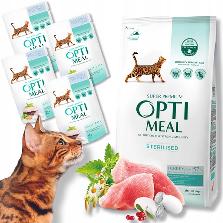 OPTIMEAL zestaw suchej i mokrej karmy dla STERYL kotów - indyk i dorsz