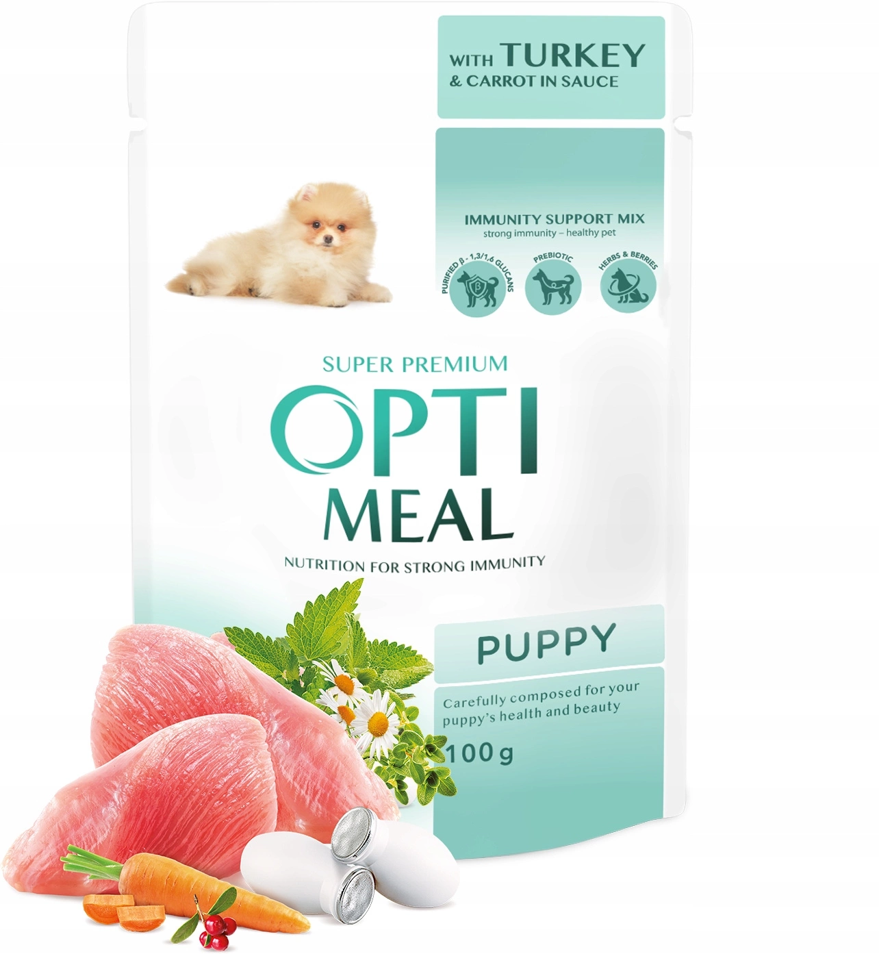 OPTIMEAL PEŁNOPORCJOWA MOKRA KARMA DLA SZCZENIĄT - INDYK I MARCHEWKA W SOSIE 12x100G
