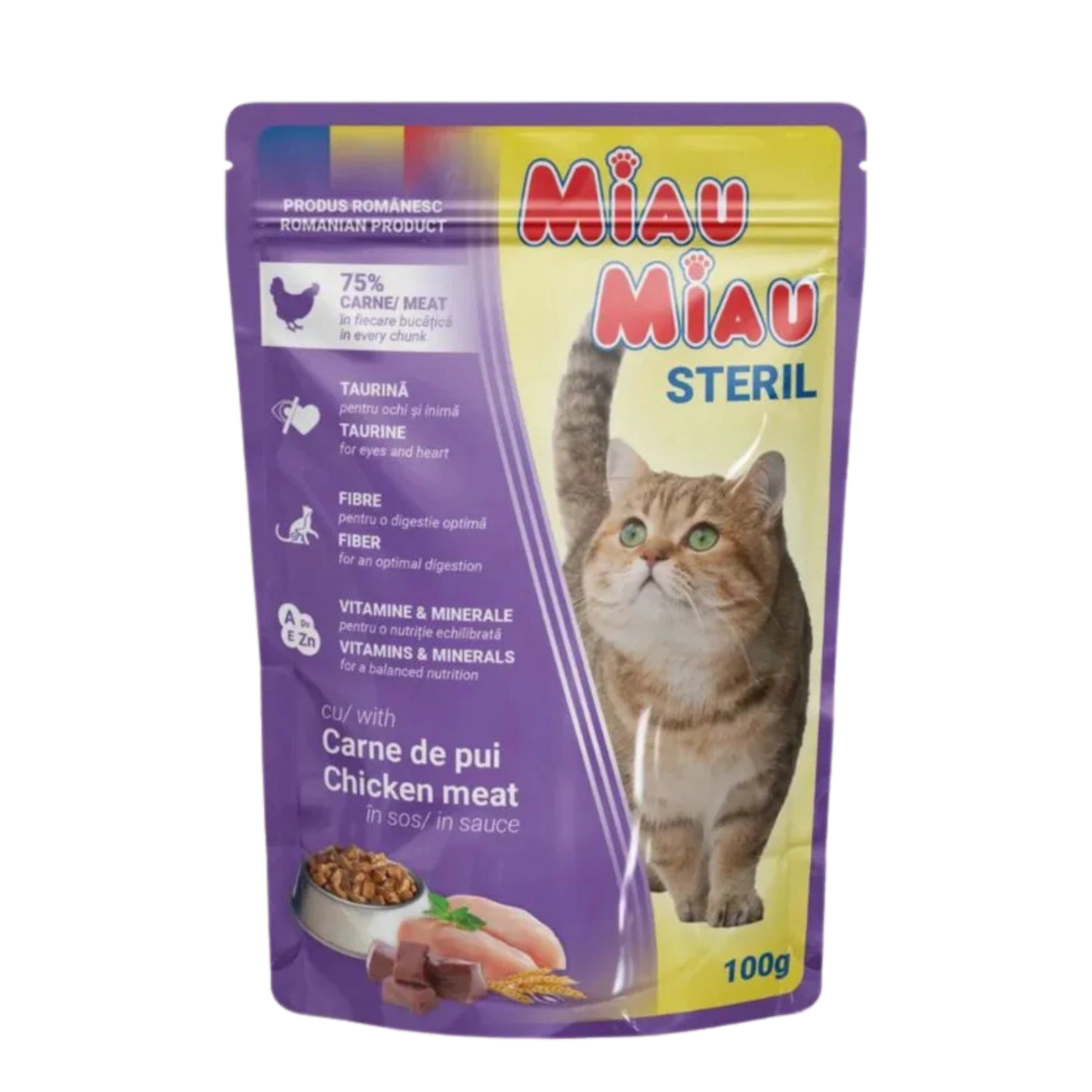 4 × Miau Miau Sterilised Kurczak w sosie (100 g)