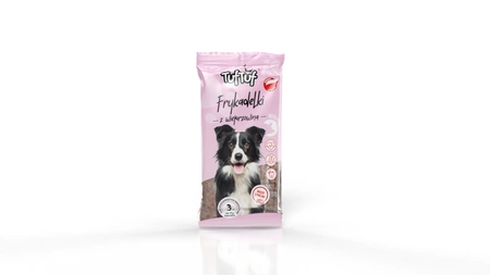 Frykadelki od TUF TUF to chrupiące ciasteczka, na widok których Twój Pies zrobi wszystko! Powstały po to by nagradzać, ale też rozpieszczać. Mały, poręczny przysmak, który sprawdzi się idealnie, by zabrać go ze sobą nawet na dłuuugi spacer.