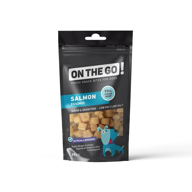 Delikatne, świeże kawałki składające się w 70% z łososia! Pyszny przysmak dla psa! Są małe i miękkie, dzięki czemu pies zjada je szybko, łatwo i delektuje się każdym kęsem – uczta!