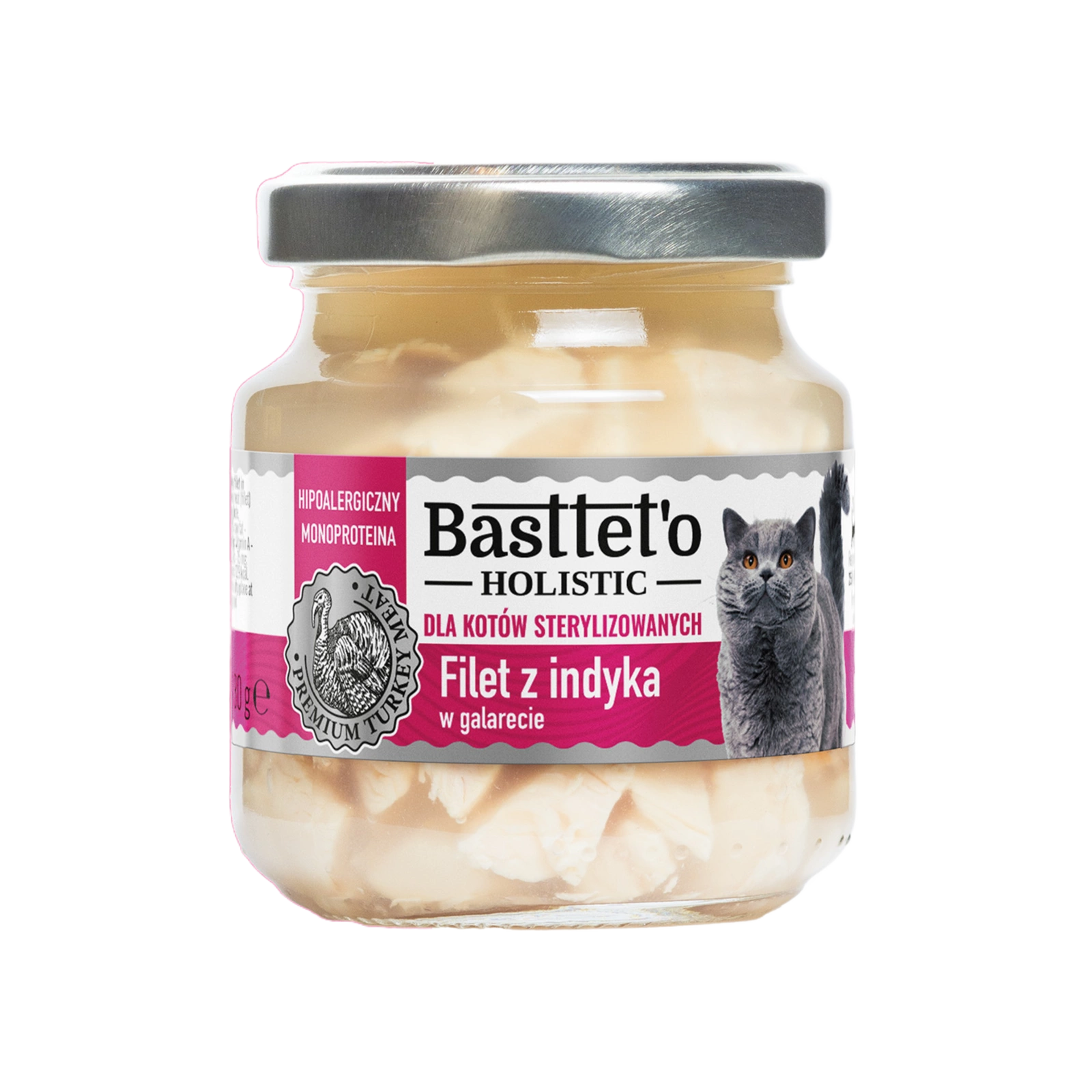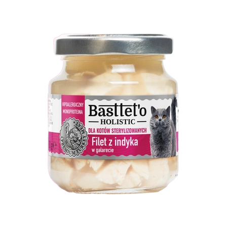 BASTTET'O HOLISTIC monoproteinowa mokra karma dla sterylizowanych kotów - indyk w galarecie, 130 g