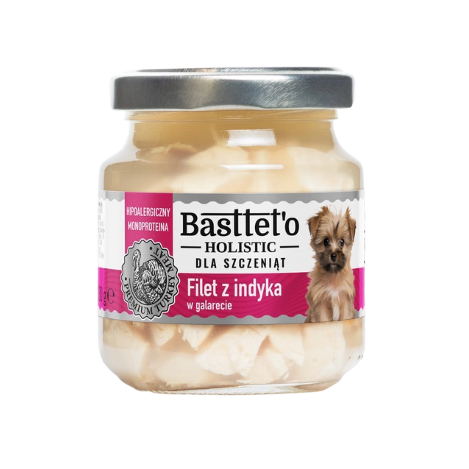 BASTTET'O HOLISTIC monoproteinowa mokra karma dla szczeniąt - indyk w galarecie, 130 g