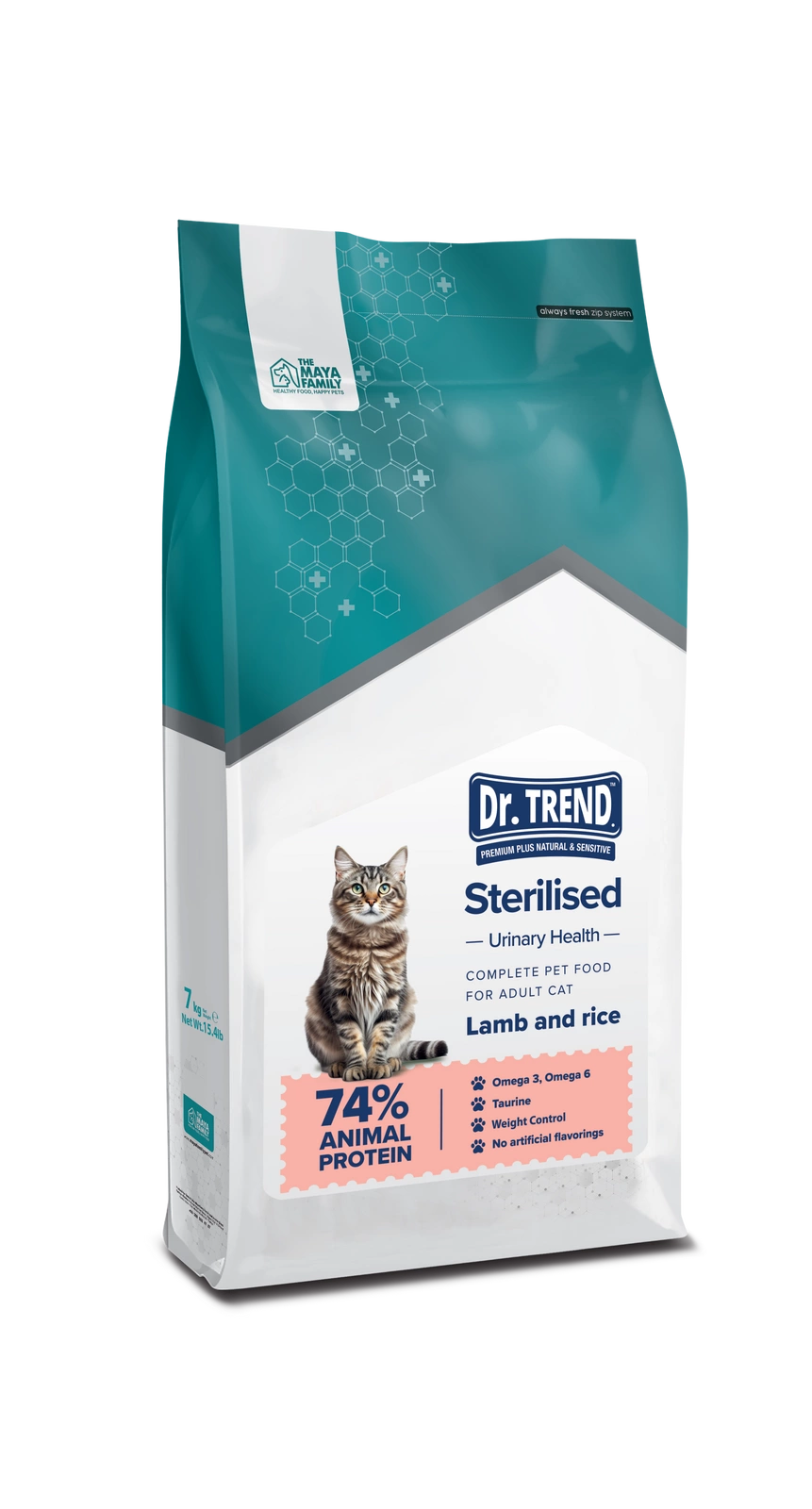 Dr.Trend Premium sucha karma dla dorosłych sterylizowanych kotów - jagnięcina i ryż, 7 kg