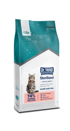 Dr.Trend Premium to pełnoporcjowa sucha karma stworzona specjalnie dla dorosłych sterylizowanych kotów. Karma zawiera starannie dobrane składniki, które pomagają w utrzymaniu zdrowej wagi, zapobiegają nadwadze i wspierają ogólne zdrowie kota po zabiegu sterylizacji. Dzięki wysokiej jakości jagnięcinie oraz ryżowi, karma dostarcza kotu wszystkich niezbędnych składników odżywczych w odpowiednich proporcjach.