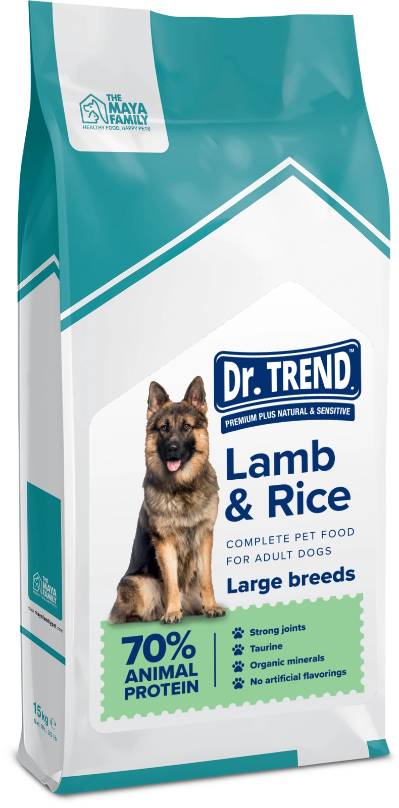 Dr.Trend Premium to pełnoporcjowa sucha karma stworzona specjalnie dla dorosłych psów dużych ras. Zawiera wysokiej jakości jagnięcinę, która dostarcza lekkostrawnego białka, wspierając zdrowie mięśni i układu trawiennego. Dodatek ryżu jako głównego źródła węglowodanów zapewnia energię, jednocześnie minimalizując ryzyko problemów trawiennych.