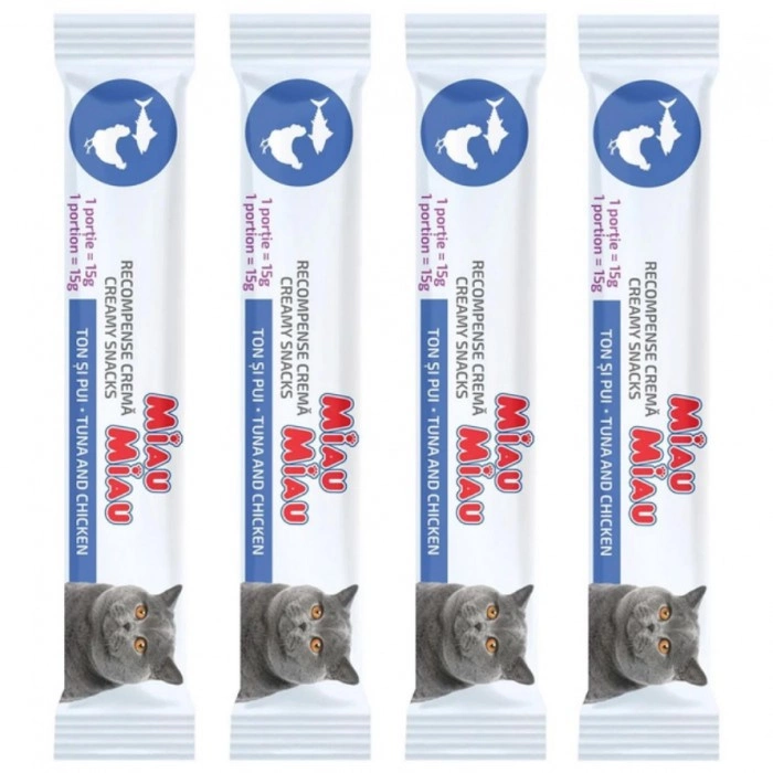 MIAU MIAU kremowy przysmak dla kotów - tuńczyk i kurczak, 4 x 15 g