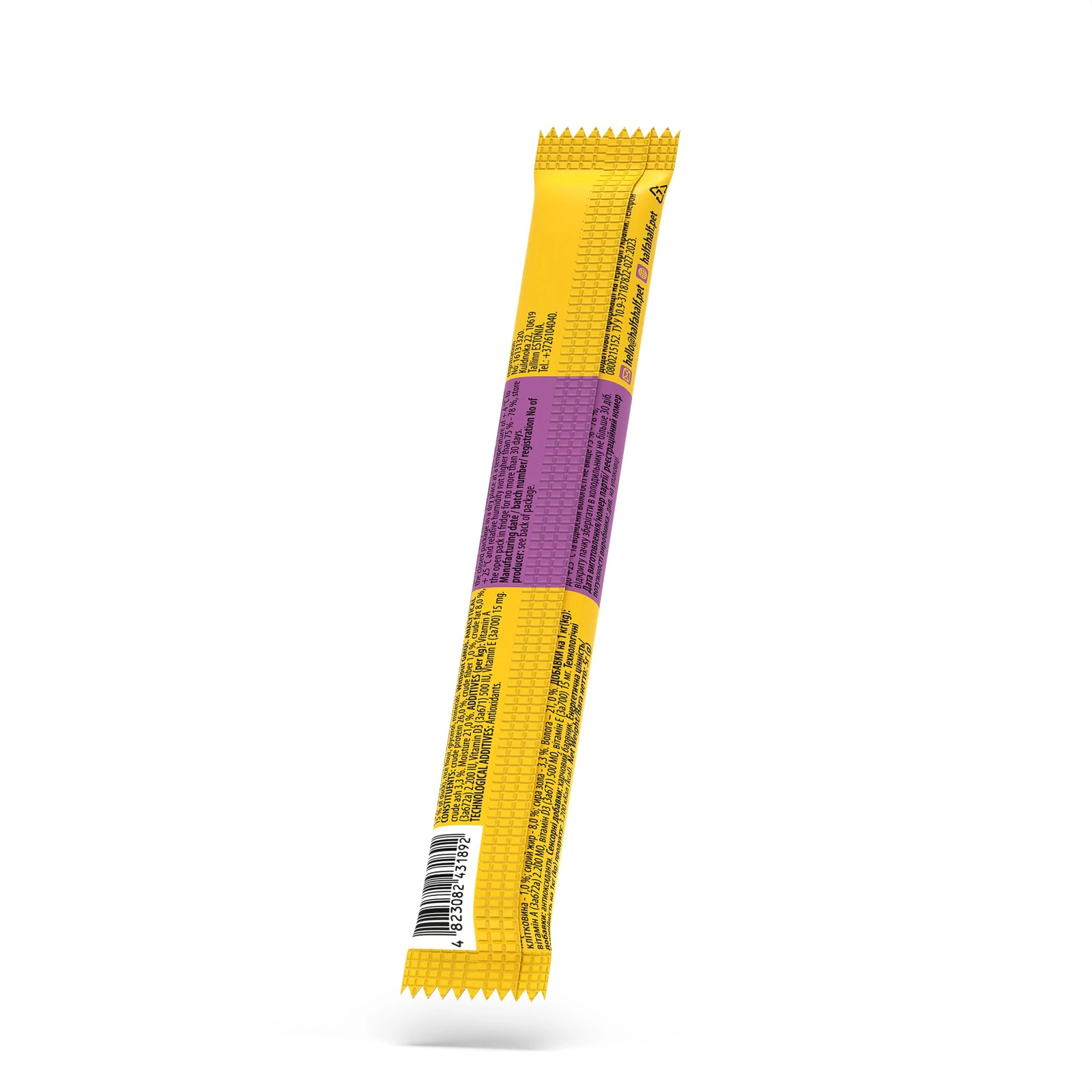 Karma uzupełniająca dla dorosłych kotów. Bezzbożowe, naturalne przysmaki mięsne stanowią doskonałe uzupełnienie głównej diety kota. Miękka i soczysta konsystencja pozwala na łamanie pałeczki na mniejsze kawałki lub podawanie jej w całości. Łatwostrawne białka nie obciążają układu pokarmowego i świetnie smakują. Kurczak i kaczka idealnie nadają się na smaczną przekąskę, wzmacniającą serce i mięśnie. Bez zbóż i składników zawierających gluten - bezpieczne dla kotów z nietolerancją glutenu. Bez GMO.